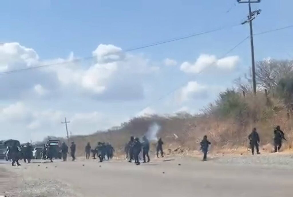 Por esta razón hoy se movilizaron en el puente Cazadero, donde instalaron un bloqueo y aproximadamente a las 3 de la tarde fueron desalojados violentamente con disparos al aire y bombas de gas lacrimógeno por policía estatal fuertemente armada, dos personas fueron detenidas con lujo de violencia, los pobladores Francisco Pineda y Arnulfo Pérez durante el operativo desconociéndose hasta este momento (18:30 horas) donde se encuentran y el tipo de lesiones que presentan.
